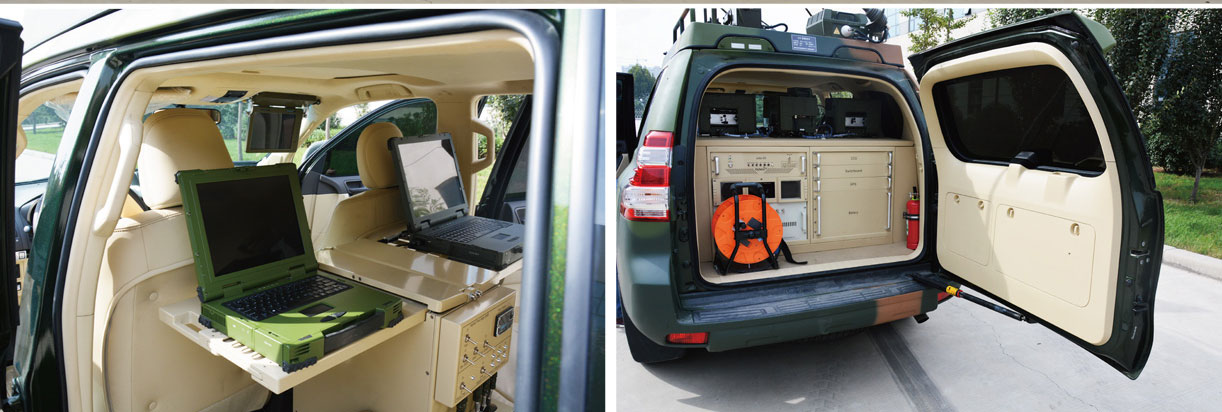 短波电台通信车配备HF电台、指挥终端和网管终端。采用军用加固计算机,与HF电台和打印机链接,打印机可通过USB电缆或网线与指挥通信计算机相连。用于打印各种字符、图表和文件。可用于指挥网络和数据文件打印中的数据传输。车辆GPS定位定向系统可以快速得到大地坐标位置及方位角信息,能指示车辆的海拔高度,作战行军时为车辆导航。可以满足军队客户的执行任务时的现场办公、通信的要求。